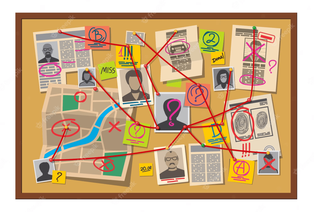 Potser és interessant evocar amb els alumnes una imatge que tots hem vist a la les pel·lícules: la d’un grup d’investigadors o detectius intentant lligar caps davant d’una paret plena de fotos i “proves” enganxades amb xinxetes.