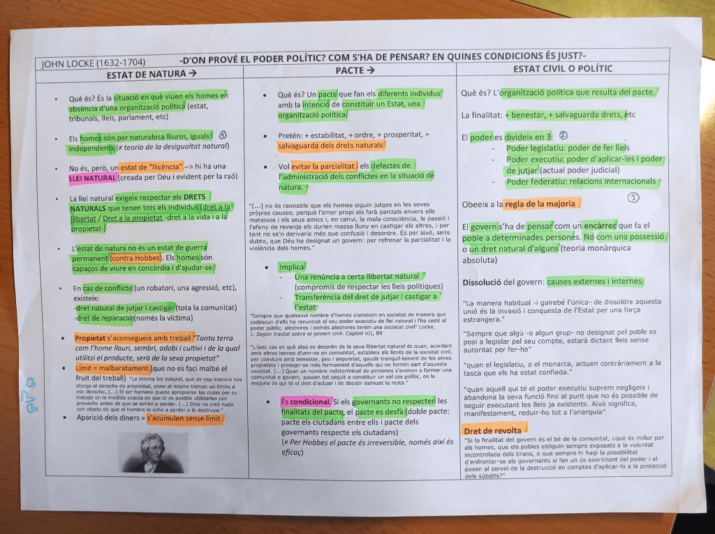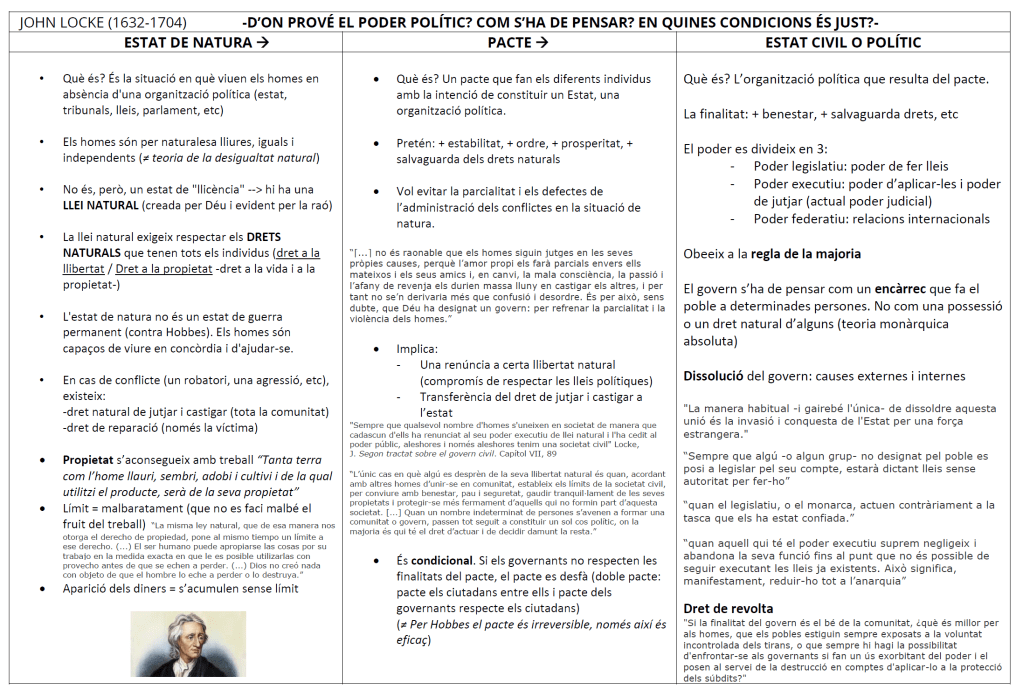 Angoixat que els meus alumnes no estiguessin prou preparats per la sele (algun dia parlaré del fantasma de la sele), havia elaborat un esquema-resum sobre Locke perquè “em semblava important -em tranquil·litzava- que el tinguessin” (“el tinguessin”: a vegades els professors som extraordinàriament vagues sobre allò que pretenem).